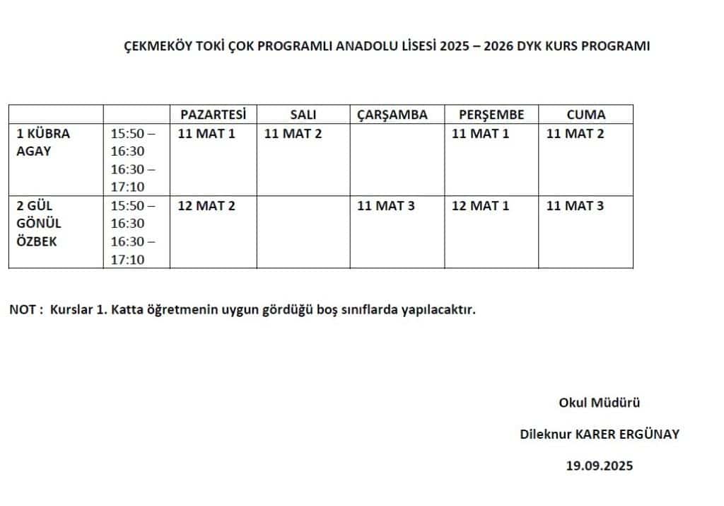 2025 - 2026 EĞİTİM ÖĞRETİM YILI DESTEKLEME VE YETİŞTİRME KURS PROGRAMIMIZ VE SINIF LİSTELERİMİZ ...