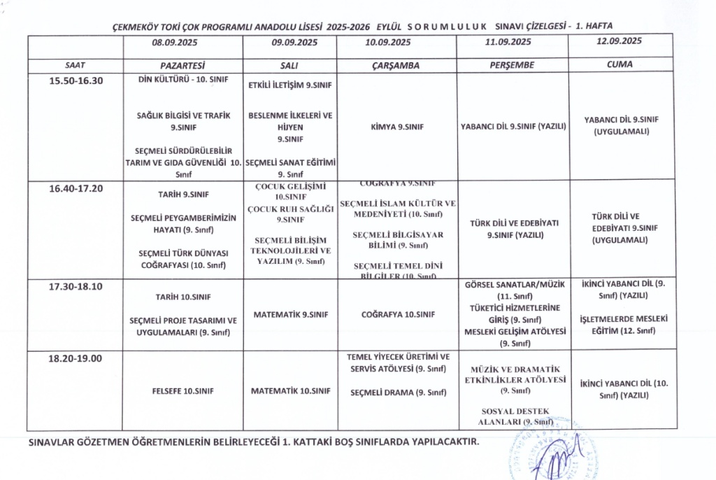EYLÜL AYI SORUMLULUK SINAV TAKVİMİMİZ YAYINLANMIŞTIR. İLGİLİ SINAVLARA GİRECEK ÖĞRENCİ LİSTEMİZ İÇİN TIKLAYINIZ