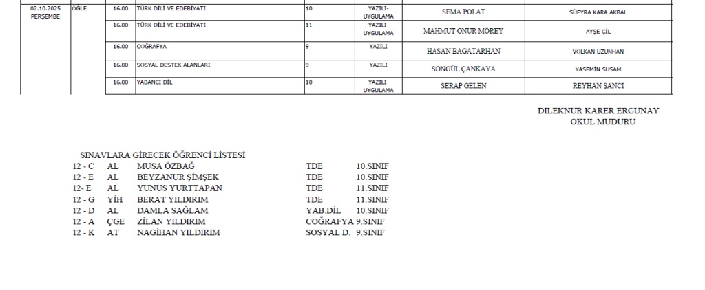 Beklemeli durumda olan ve 12.sınıf öğrencilerimiz için 2 Ekim 2025 Perşembe tarihinde tek ders sınavları yapılacaktır.